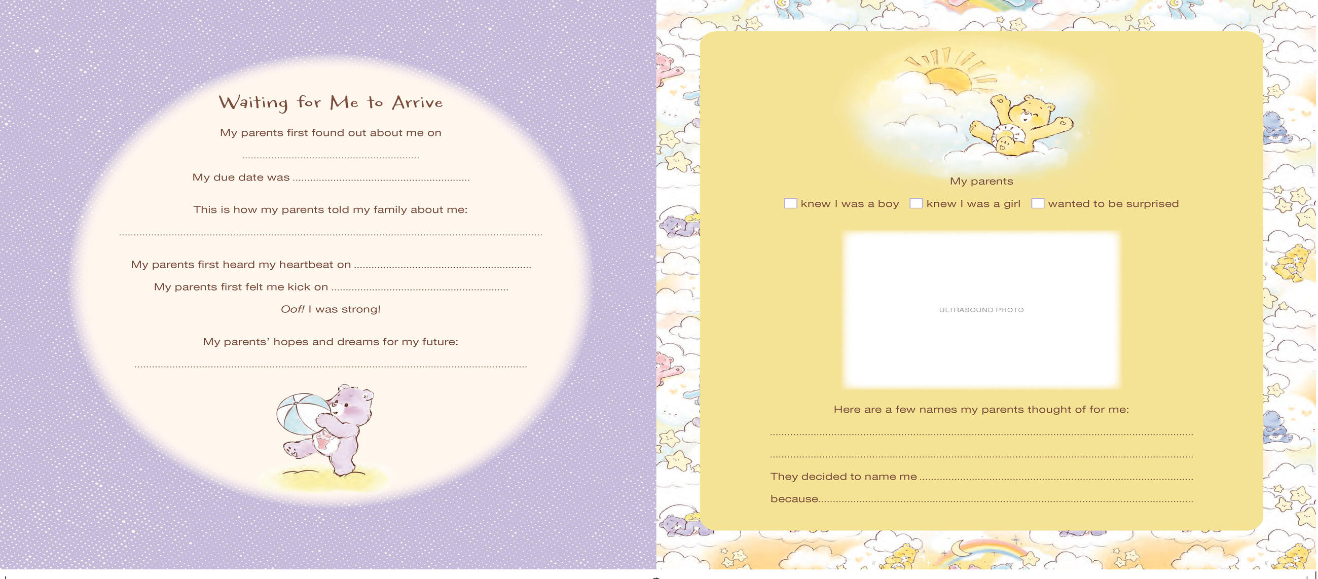 Welcome your little bundle of joy with love, laughter, and the magic of Care Bears. The Care Bears Baby Book is a heartwarming keepsake designed to capture every precious moment of your baby’s first years—from first giggles to first steps, and all the snuggles in between.