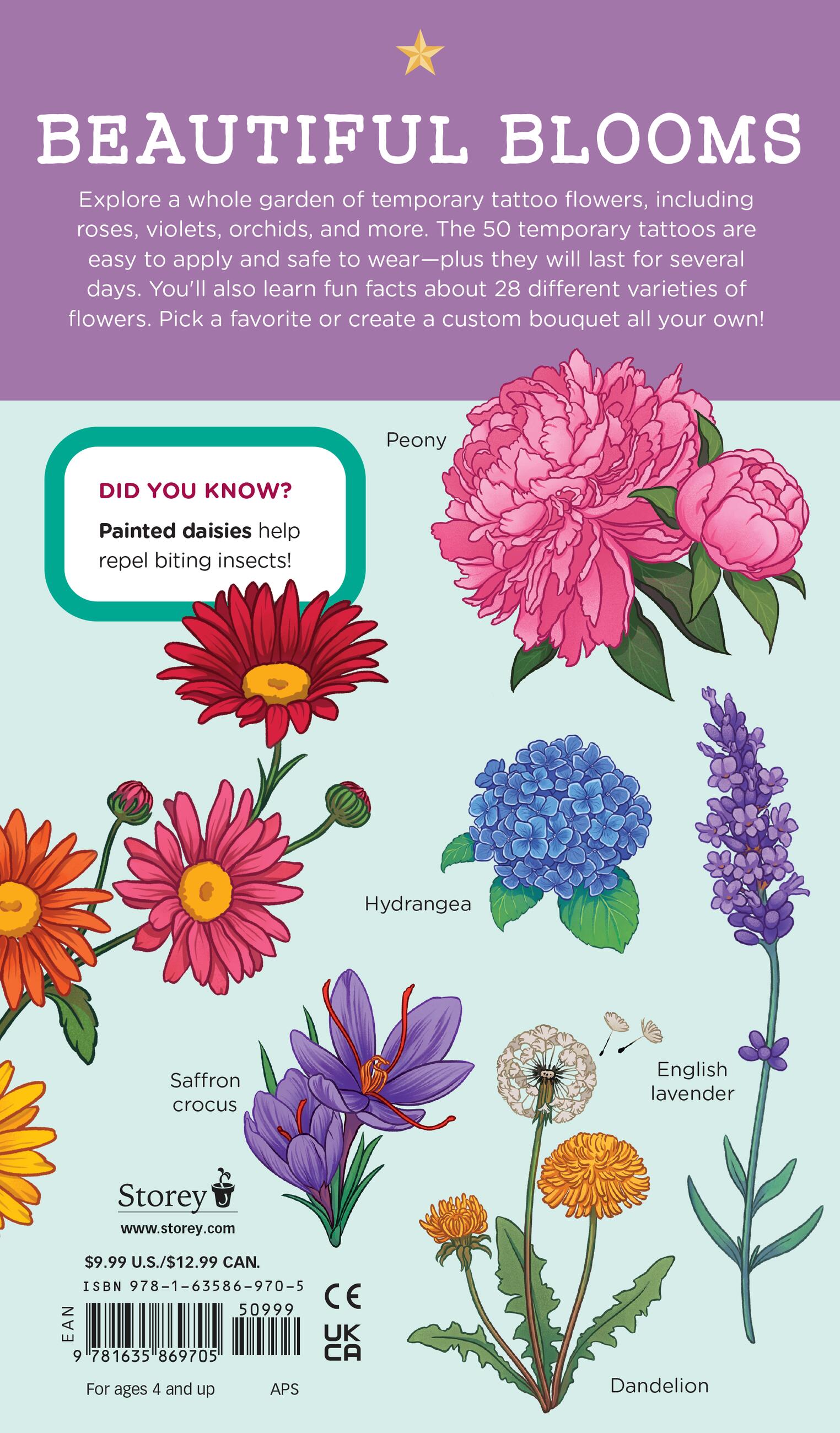 Choose your favorite blooms or mix and match to make a custom bouquet of temporary tattoos with this delightful addition to the Tattoos That Teach series. Gorgeous Garden of Tattoo Flowers features:
