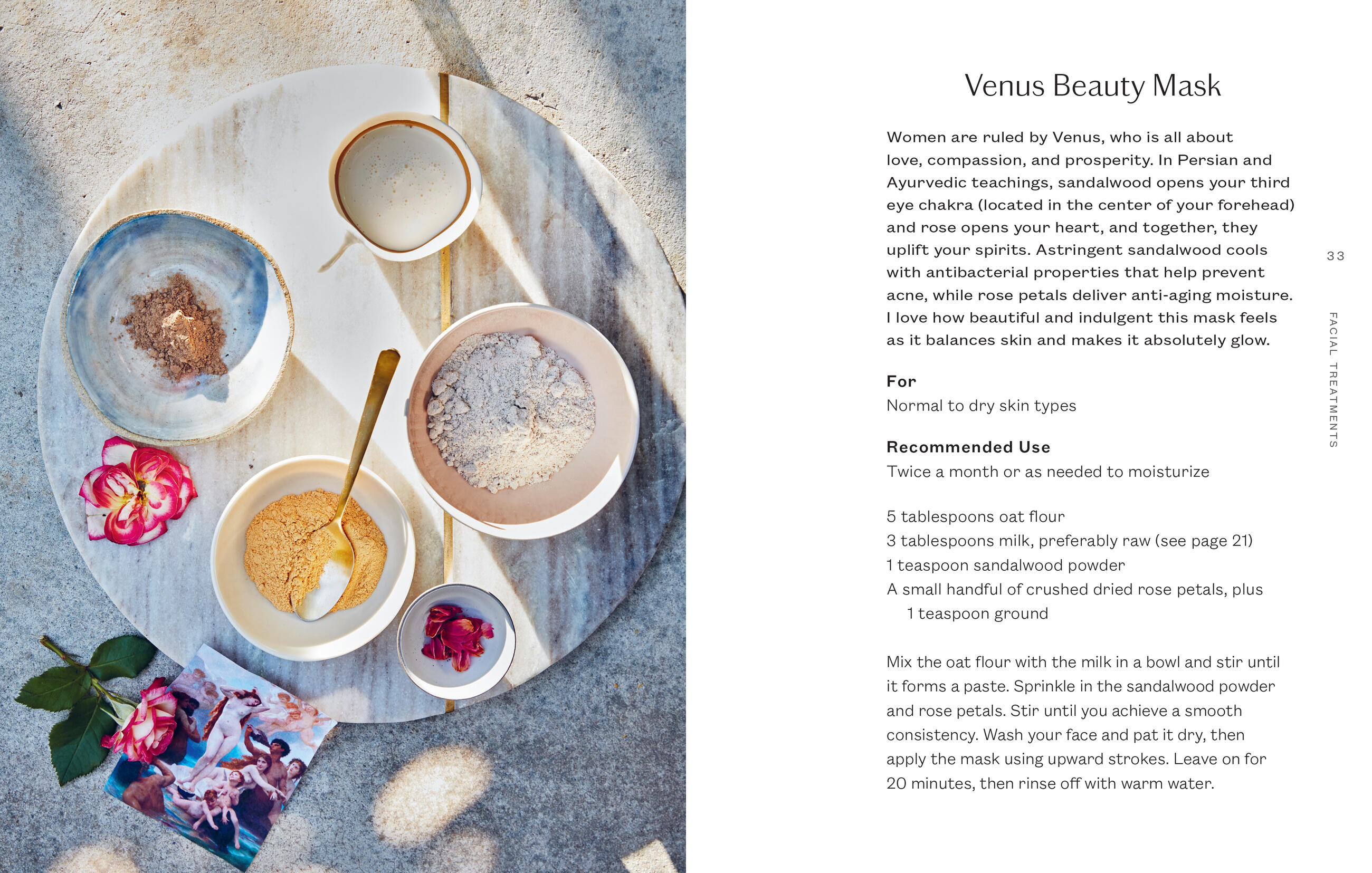 Enliven the body and tap into the full force of female energy with these natural recipes for total body decadence, including Rose’s Lustrous Lakshmi hair mask, Revitalizing Body Scrub, and Nourishing Face Oil, each made from everyday household ingredients.