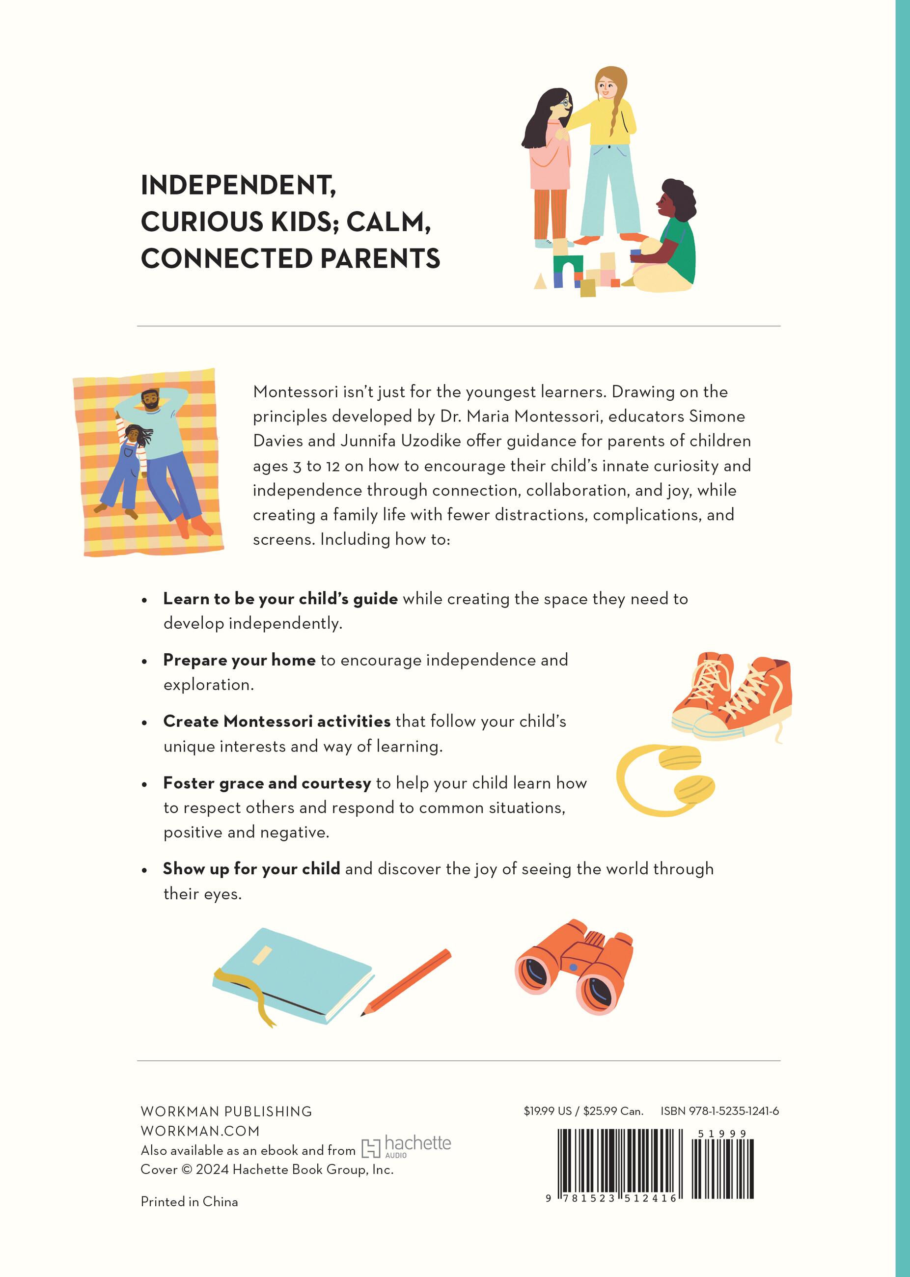 When children are given independence, the tools to succeed, and the encouragement to build on their abilities, it’s amazing what they can achieve. The newest book in the bestselling Montessori series is an everything-you-need-to-know guide to raising your school-aged child (from 3–12 years old, with a bonus chapter for the teen years) in the Montessori way. Educators Simone Davies and Junnifa Uzodike provide an in-depth, practical guide to incorporating Montessori principles into readers’ everyday lives, with advice on everything from setting up your home in ways that encourage curiosity and independence to supporting your child’s social and moral development with a balance of limit-setting and age-appropriate freedoms.The book includes dozens of hands-on activities to help foster your child’s love of numbers and literacy, art and science, and ones that encourage community-building, social awareness, and connection with the natural world. The Montessori Child offers a powerful alternative for parents who feel that family life has gotten too complicated by showing parents how to make more intentional choices for your family, how to better understand the needs of your children, and support them as they develop their unique potential.