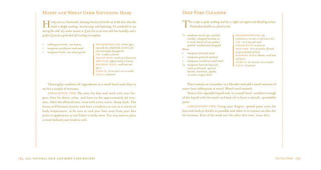 Discover the joys of all-natural body care. Stephanie Tourles shows you how to use fruit, flowers, herbs, and minerals to craft healthy products that promote radiant skin, strong nails, shiny hair, and an elevated mood. Pamper yourself from head to toe with products like Strawberry Cleanser, Pineapple Sunflower Scrub, and Almond Rose Body Lotion. Gentle on your skin and free of harsh chemicals found in commercial products, you’ll want to indulge yourself over and over with these luxuriously aromatic bath blends, face masks, and body scrubs.