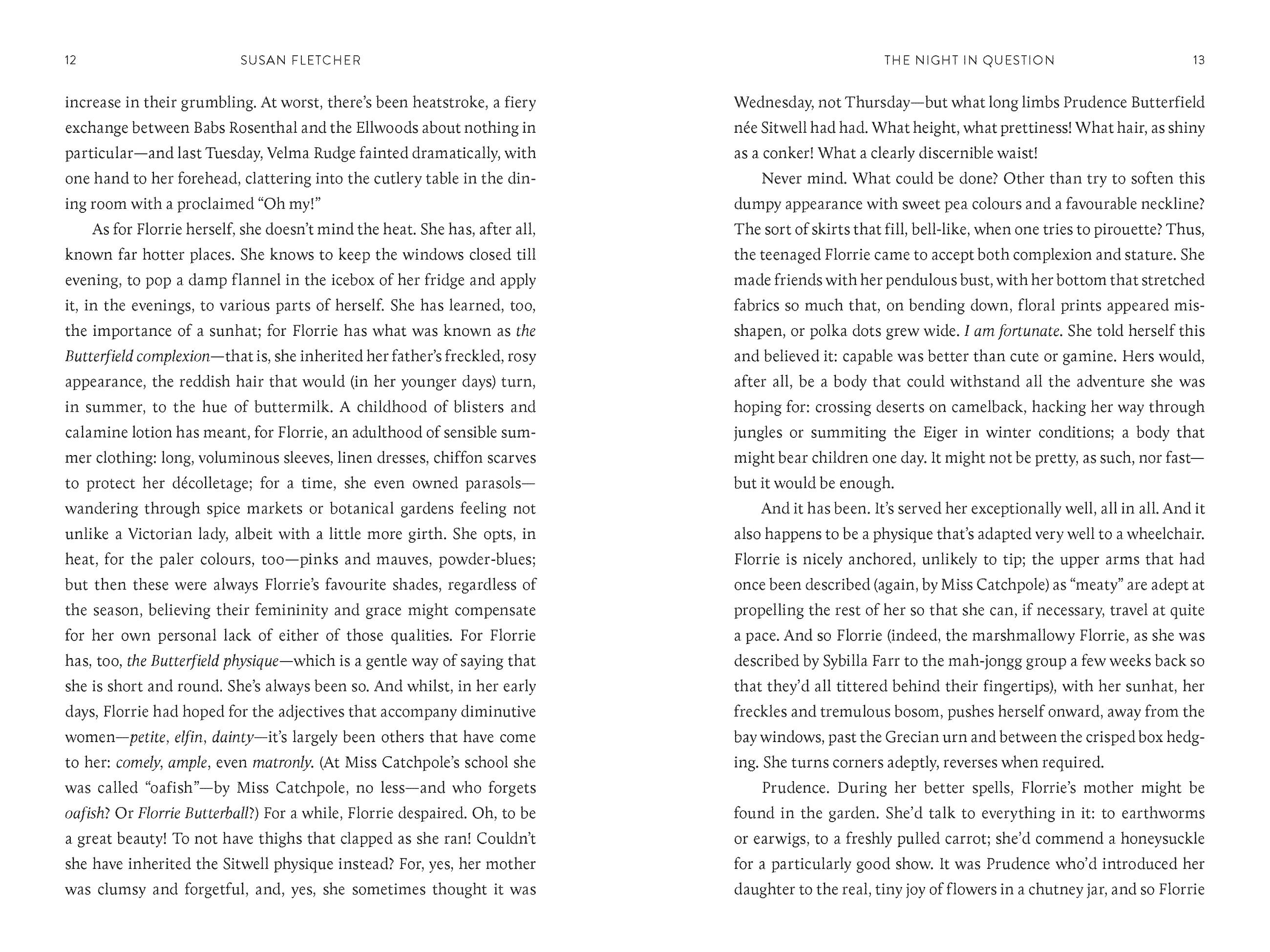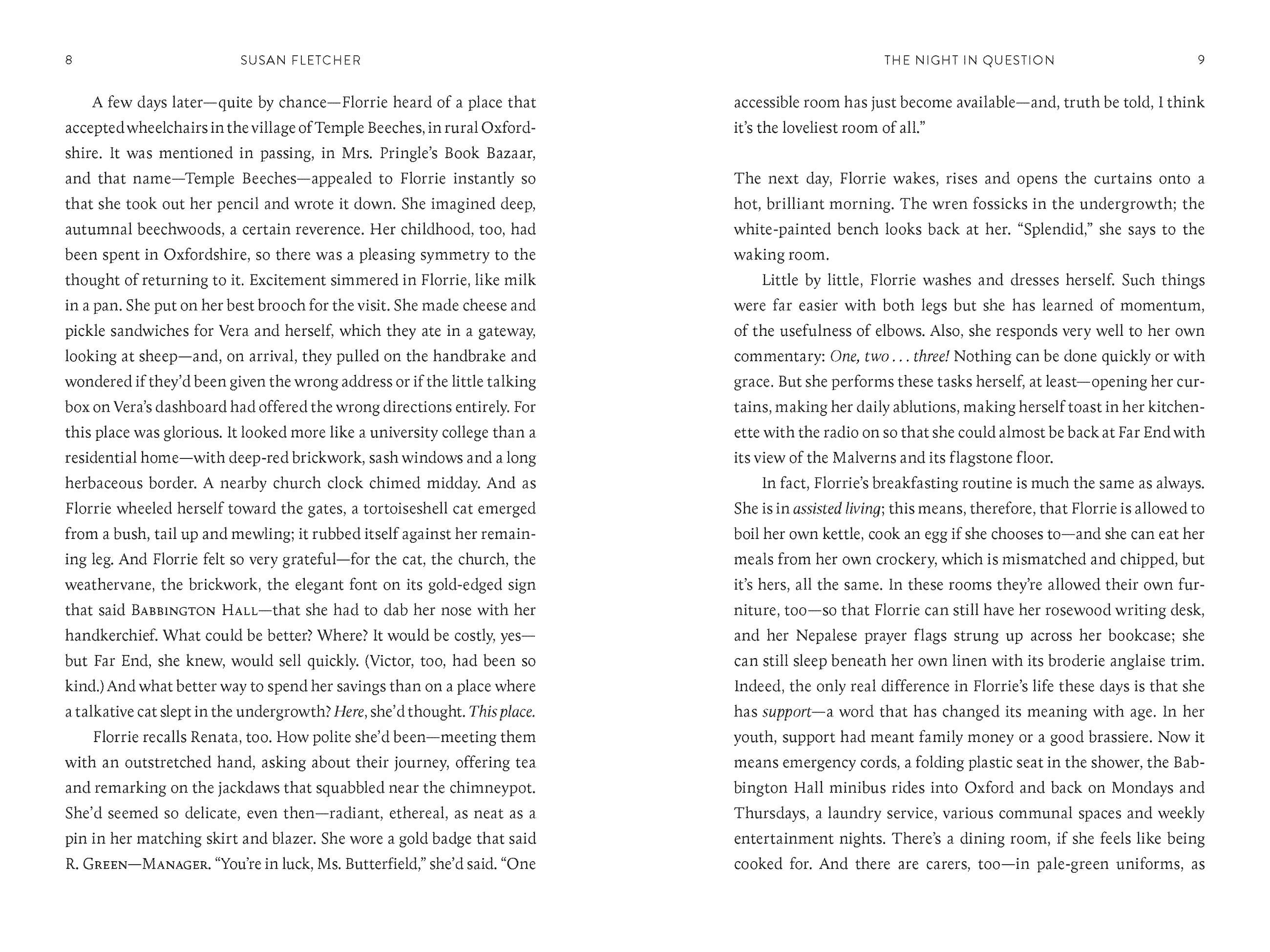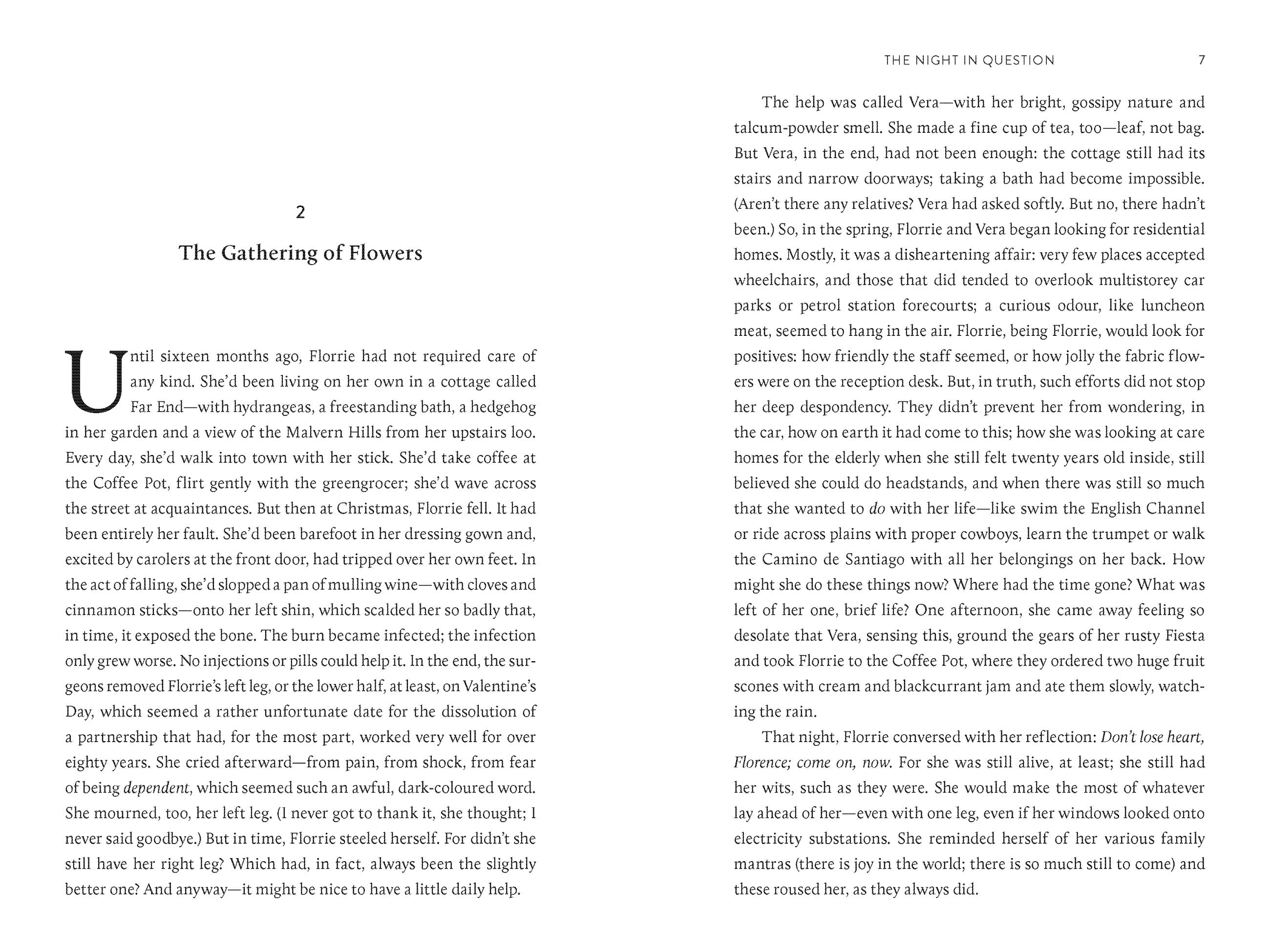 Florrie Butterfield—eighty-seven, one-legged, and of cheerful disposition—believes there can’t be any more adventures or surprises in life to experience. Yet one midsummer’s evening, there’s an accident at Babbington Hall—the adult residence where she lives—so shocking and strange that Florrie is suspicious; is this really an accident? Or is she being lied to? Is she, in fact, living alongside a potential murderer? In her efforts to learn the truth, Florrie is forced to look back on her own life, with all its passions and regrets; she must confront her own bloody secret—and, at last, forgive herself. Above all, Florrie learns, through the help of her new friend, Stanhope, that you’re never too old to have the life you’ve always dreamed of. When it comes to love, it’s never too late.
