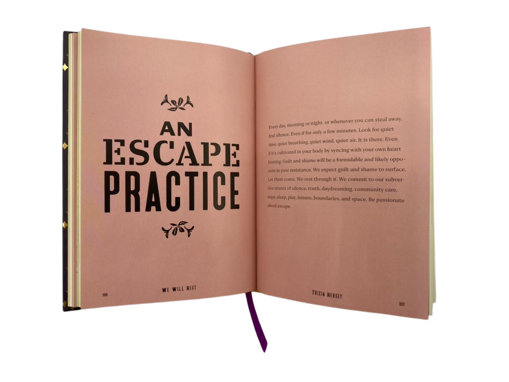 We Will Rest! is a modern sacred object, medicine for a sick and exhausted world. Weaving together meditations and poetry with storytelling and art, Hersey provokes liberation through refusal and trickster rebellion in the face of capitalism and white supremacy.