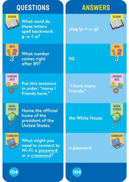 Loved by kids, teacher-approved, and featuring hundreds of fast-paced questions and answers based on reading, math, language arts, science, social studies, and more to reinforce classroom learning.