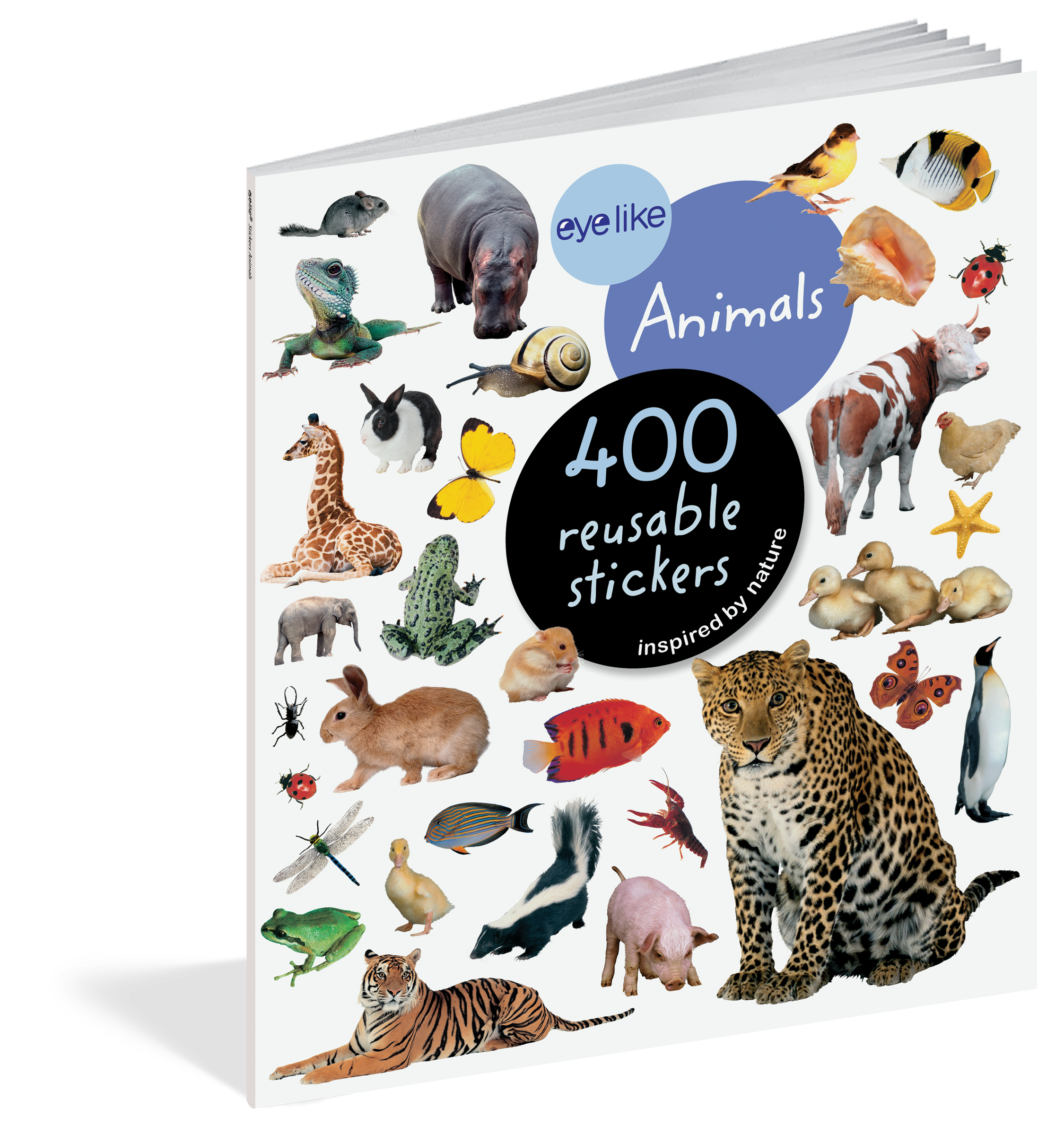 From lions and tigers to frogs and lizards, there are vibrantly colorful and photorealistic stickers for all types of animals–mammals, birds, reptiles, insects, and fish. Whether on windows, notebooks, lunch boxes, or scrapbooks, these peel-and-place stickers are perfect for creating your own work of art anytime, anywhere, and are designed to be stuck on, peeled off, and stuck on again without tearing or losing their “stick.” The books’ inside covers are glossy illustrated backgrounds on which kids can create lively and original sticker scenes―and then change them whenever they like.