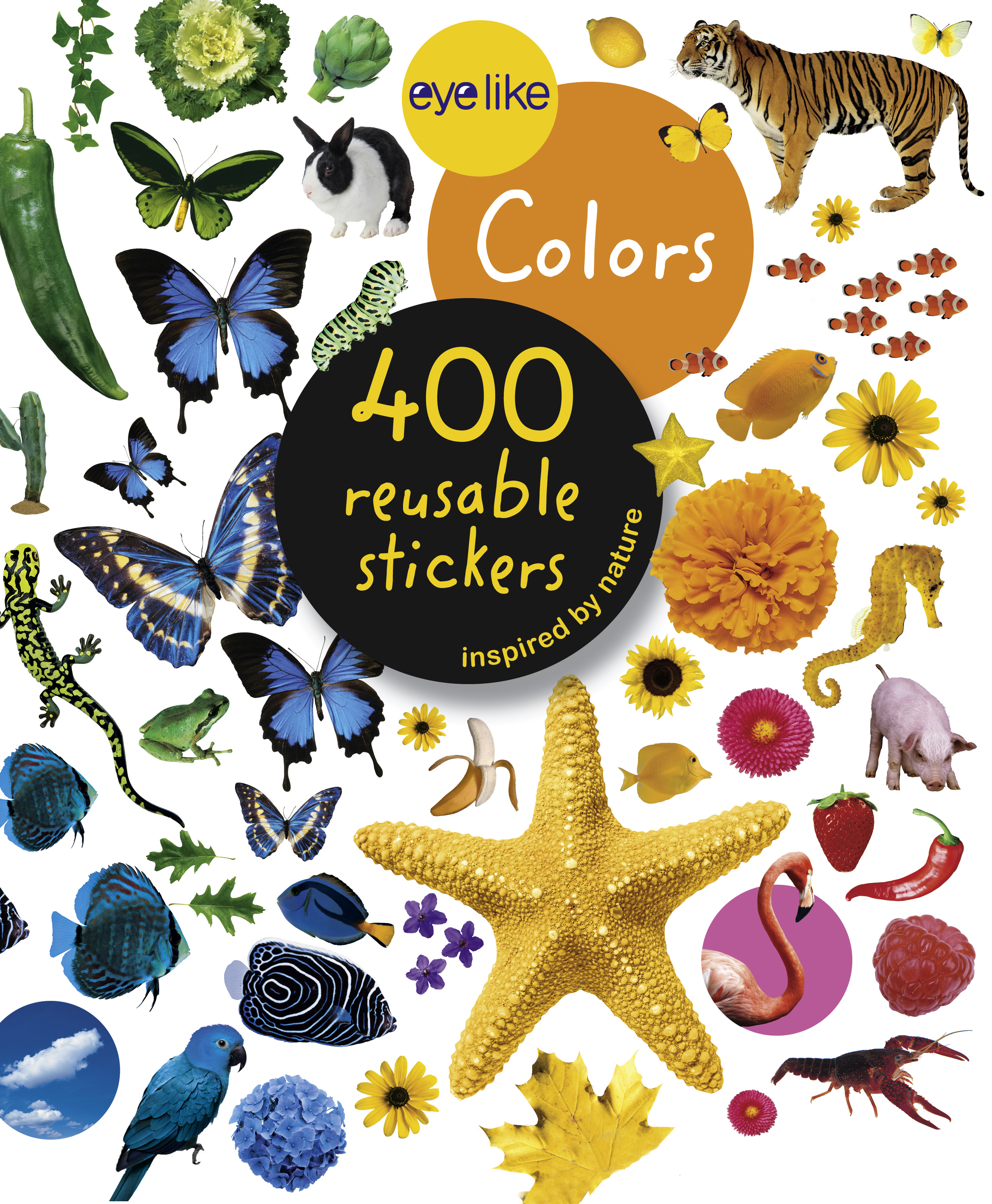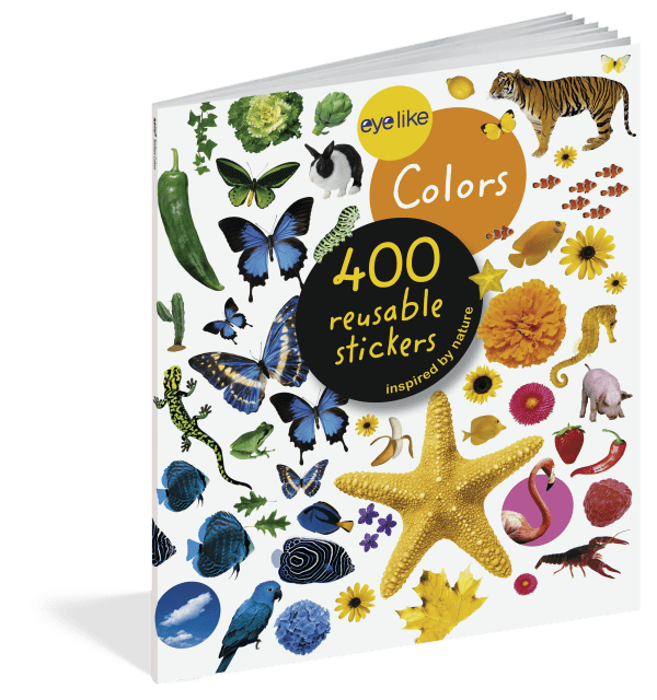 Containing stickers in every color of the rainbow, each page is full of vibrant, photorealistic images sorted by color (orange is for tigers, clownfish, pumpkins, parrots, and carrots!). Whether on windows, notebooks, lunch boxes, or scrapbooks, these peel-and-place stickers are perfect for creating your own work of art anytime, anywhere, and are designed to be stuck on, peeled off, and stuck on again without tearing or losing their “stick.” The books’ inside covers are glossy illustrated backgrounds on which kids can create lively and original sticker scenes―and then change them whenever they like.