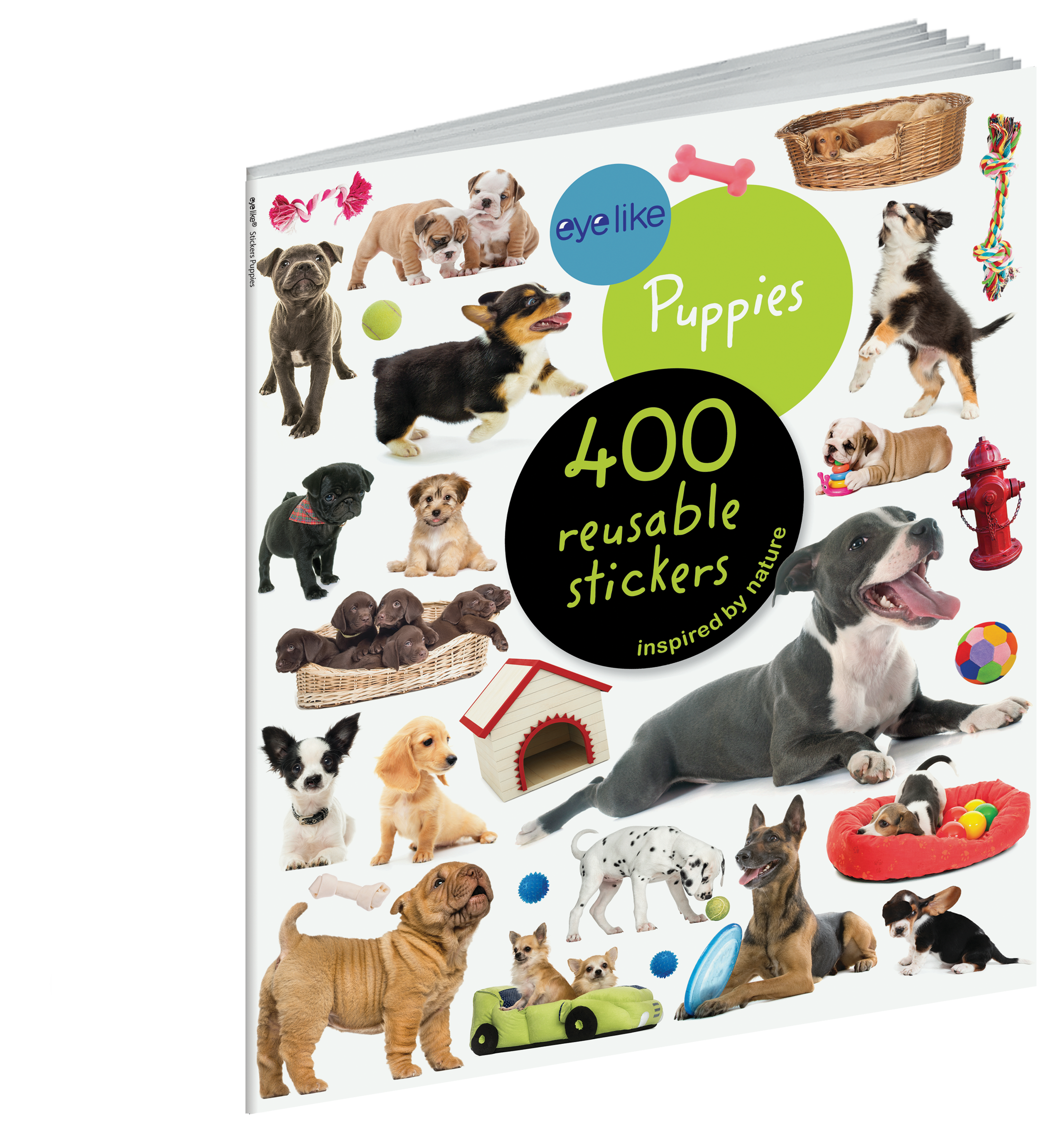 The full-color photographic stickers feature a variety of adorable breeds in cute and playful poses that will melt any dog-lover’s heart. Whether on windows, notebooks, lunch boxes, or scrapbooks, these peel-and-place stickers are perfect for creating your own work of art anytime, anywhere, and are designed to be stuck on, peeled off, and stuck on again without tearing or losing their “stick.” The books’ inside covers are glossy illustrated backgrounds on which kids can create lively and original sticker scenes―and then change them whenever they like.