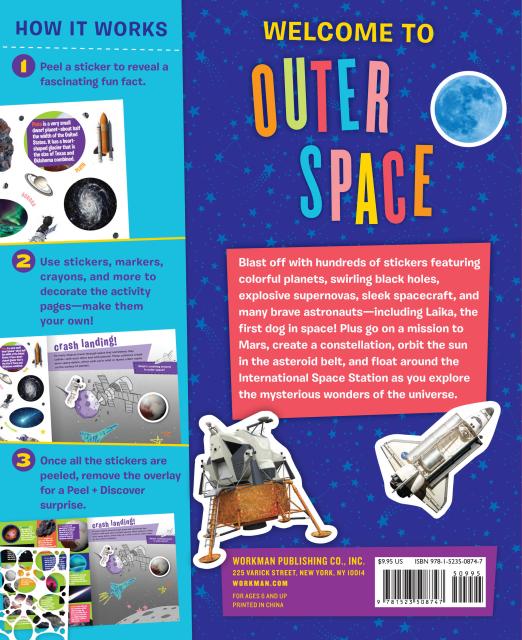 Blast off with hundreds of stickers featuring colorful planets, swirling black holes, explosive supernovas, sleek spacecraft, and many brave astronauts—including Laika, the first dog in space! Plus go on a mission to Mars, create a constellation, orbit the sun in the asteroid belt, and float around the international Space Station as you explore the mysterious wonders of the universe.